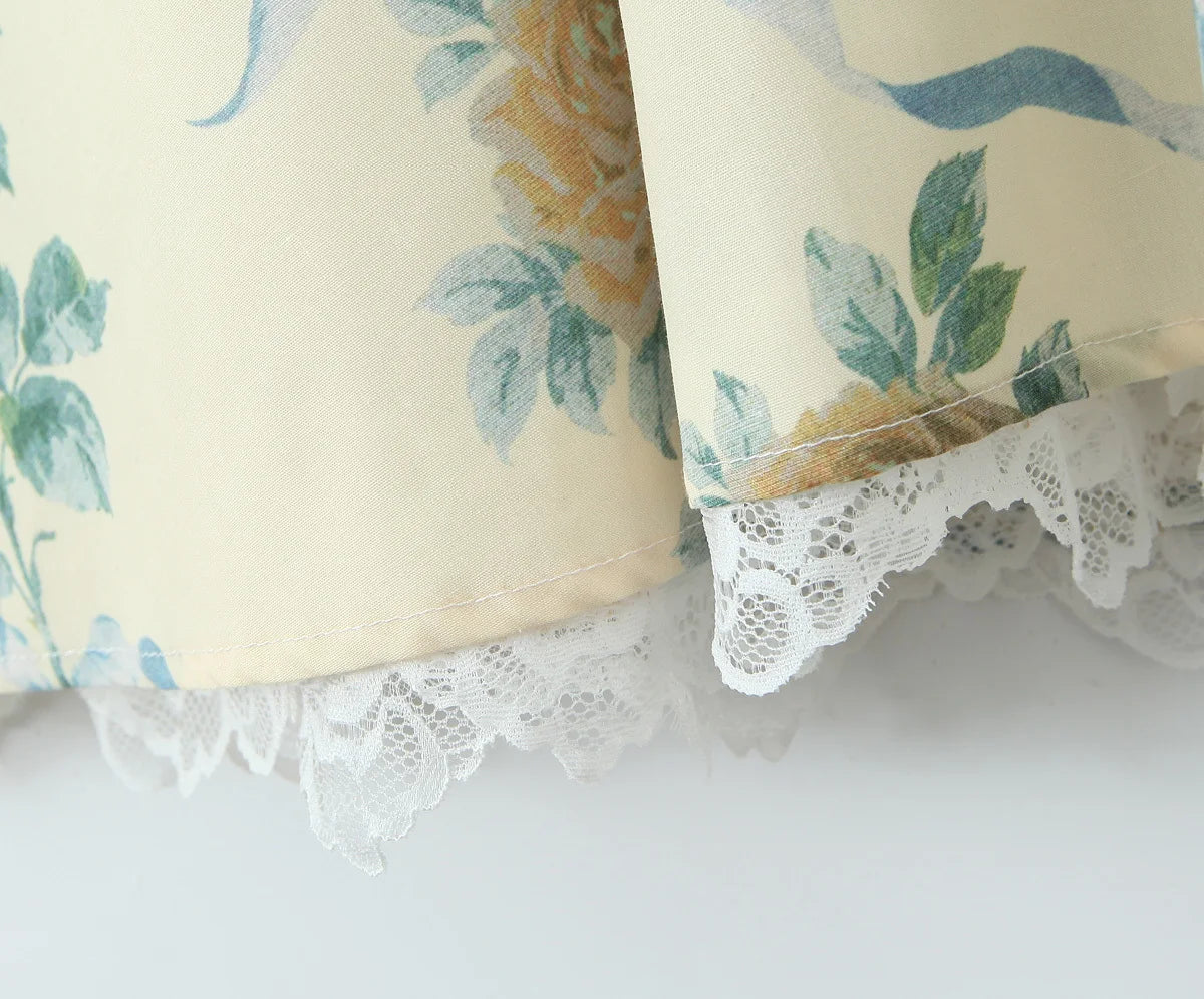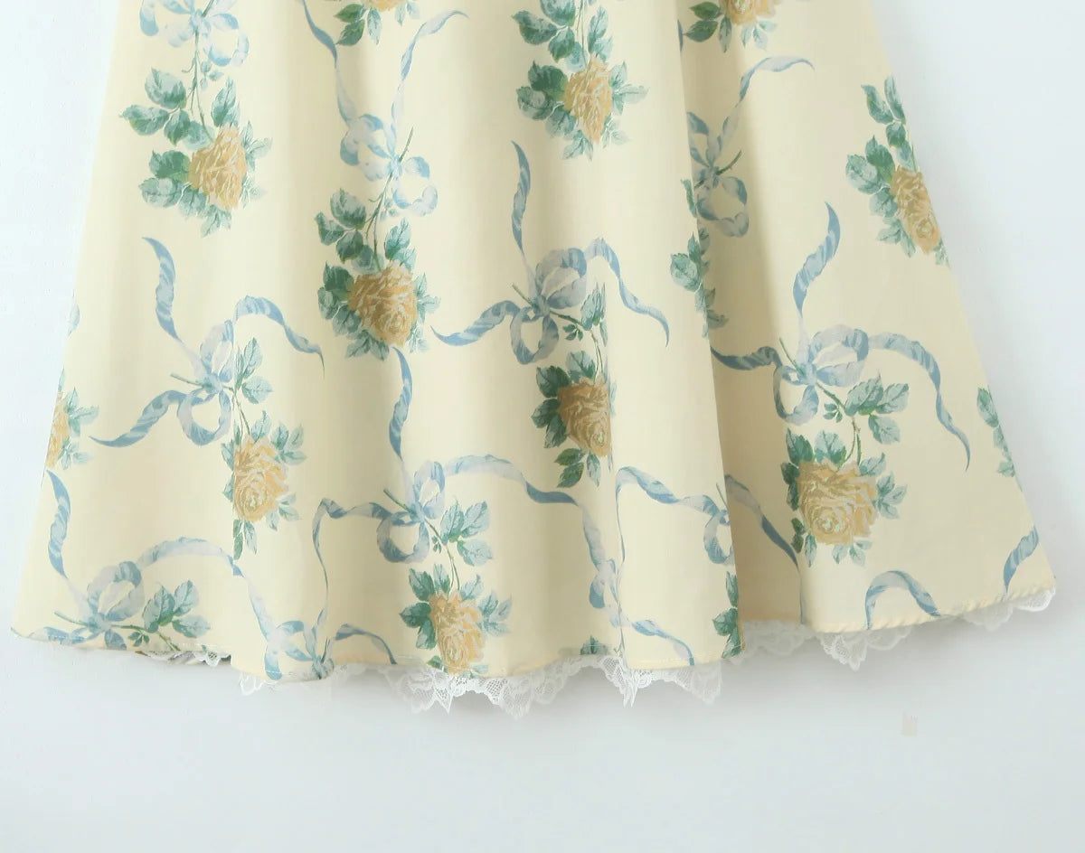 Floral Print Fishbone Waist Spaghetti Straps Dress